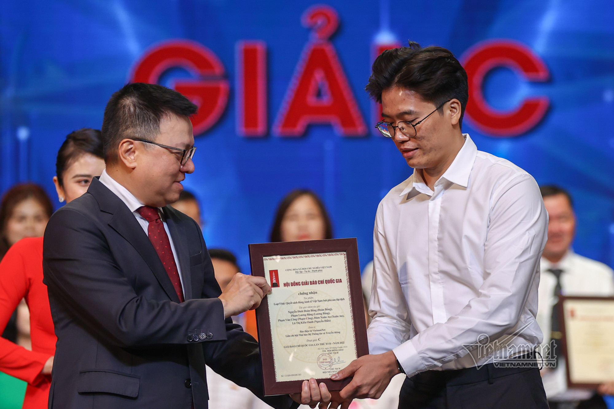 “Tôi đánh giá cao các tác phẩm đoạt giải năm nay đã tiếp tục khẳng định tính cách mạng, tính khoa học, sự nhạy bén và sự dấn thân không mệt mỏi của các nhà báo, thể hiện rõ năng lực chuyển đổi số và đổi mới sáng tạo báo chí. Nhiều tác phẩm mang tính phát hiện, tính chiến đấu cao, sắc bén, phản biện mang tính khoa học”, Chủ tịch nước Võ Văn Thưởng khẳng định.