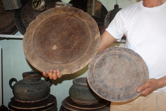 Rồi sau đó ông mang đi cọ rửa, lau chùi tỉ mỉ và cất ở một nơi khô ráo. Rảnh rỗi lại mang mâm ra ngắm nghía. Mỗi lần như vậy tôi thấy chồng mình đúng là hâm. Quý hoá gì mà lôi về cho rác nhà” - bà Lê Thị Chiêm (vợ ông Hoa) chia sẻ.