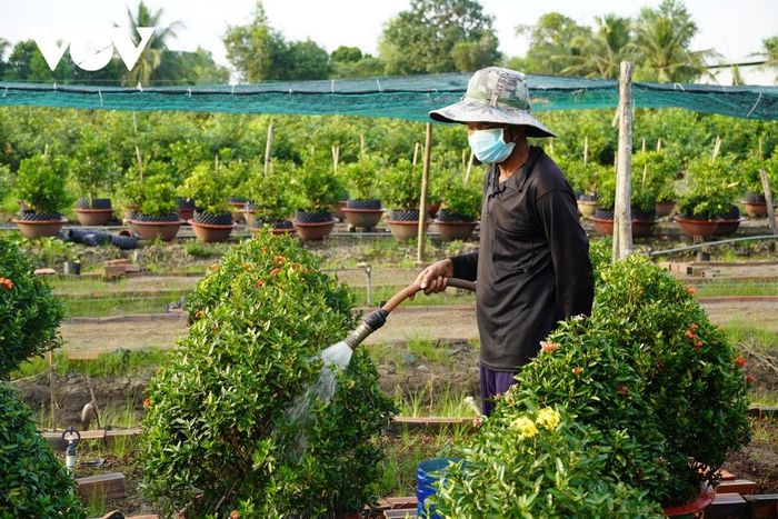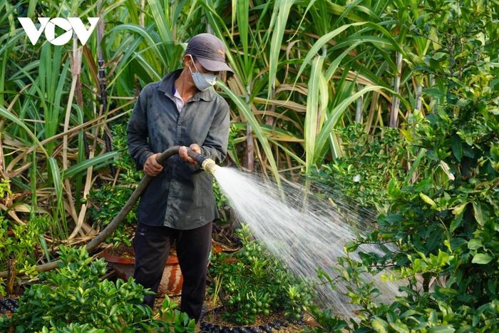 Mỗi tuần nông dân xới đất cho hoa một lần, ngày tưới nước ba lần và thường xuyên cắt tỉa lá.