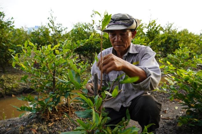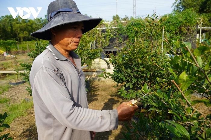Thời điểm này, nhiều cây mai ở làng mai Bình Lợi, huyện Bình Chánh đã nở, nhưng mai trong vườn của ông Phạm Văn Hưng dự kiến vẫn ra hoa đúng dịp Tết.