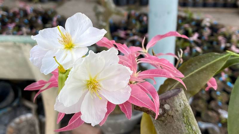 15. Cây Hồng Tuyết Mai (Mai Trắng Đọt Hồng)