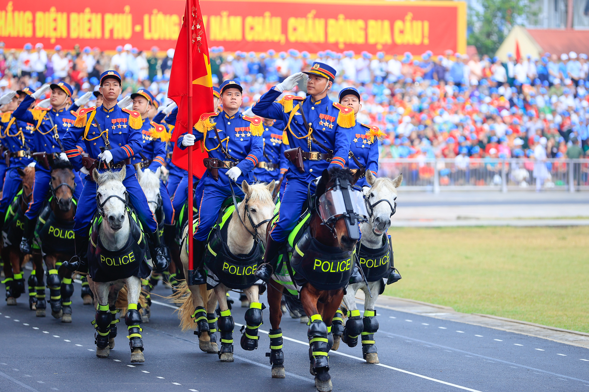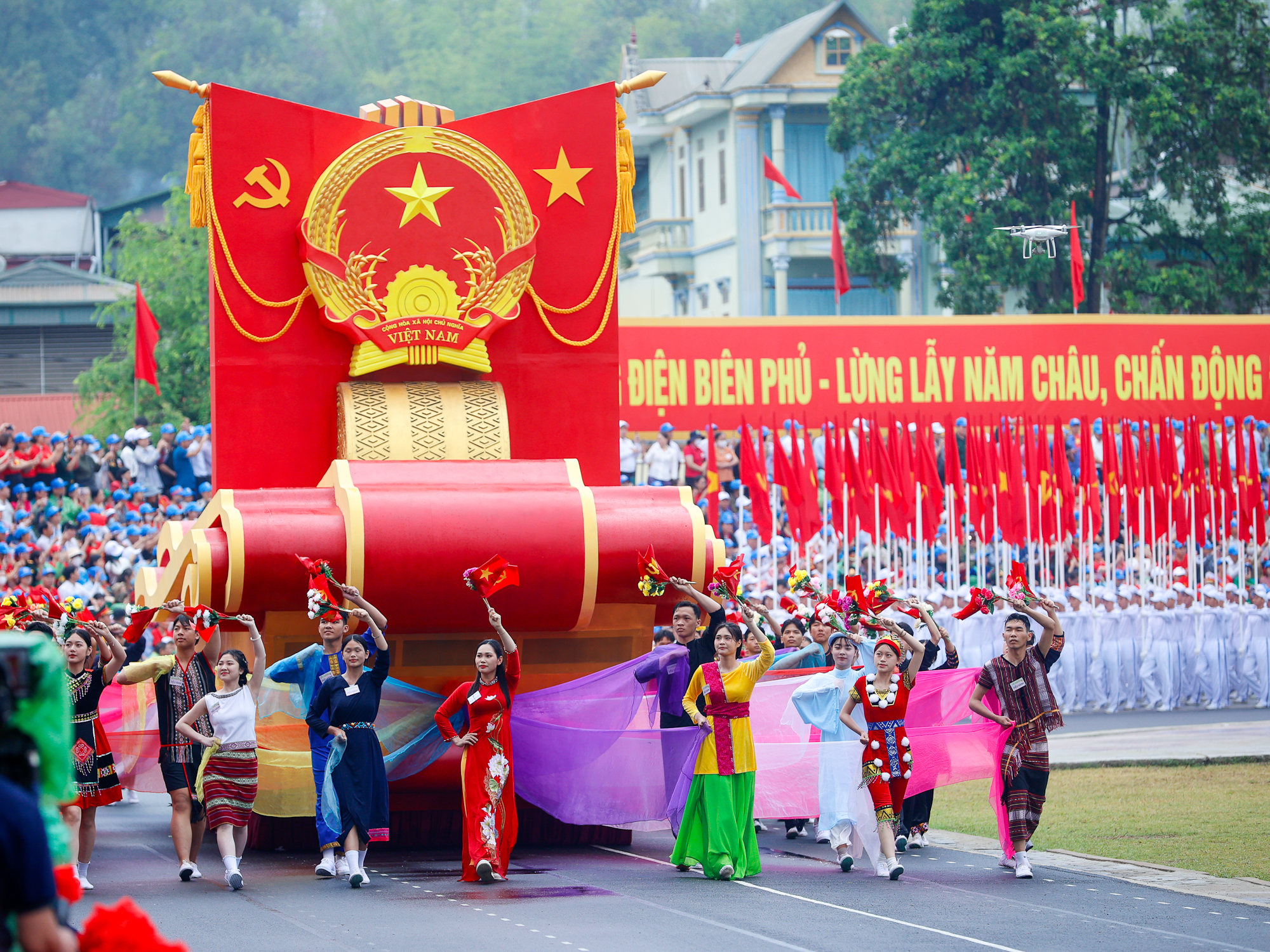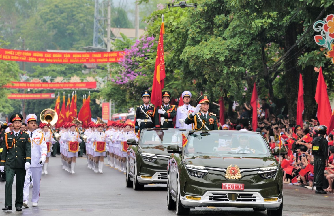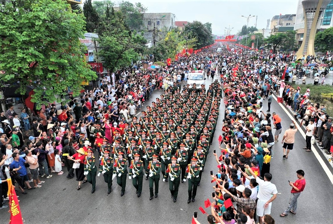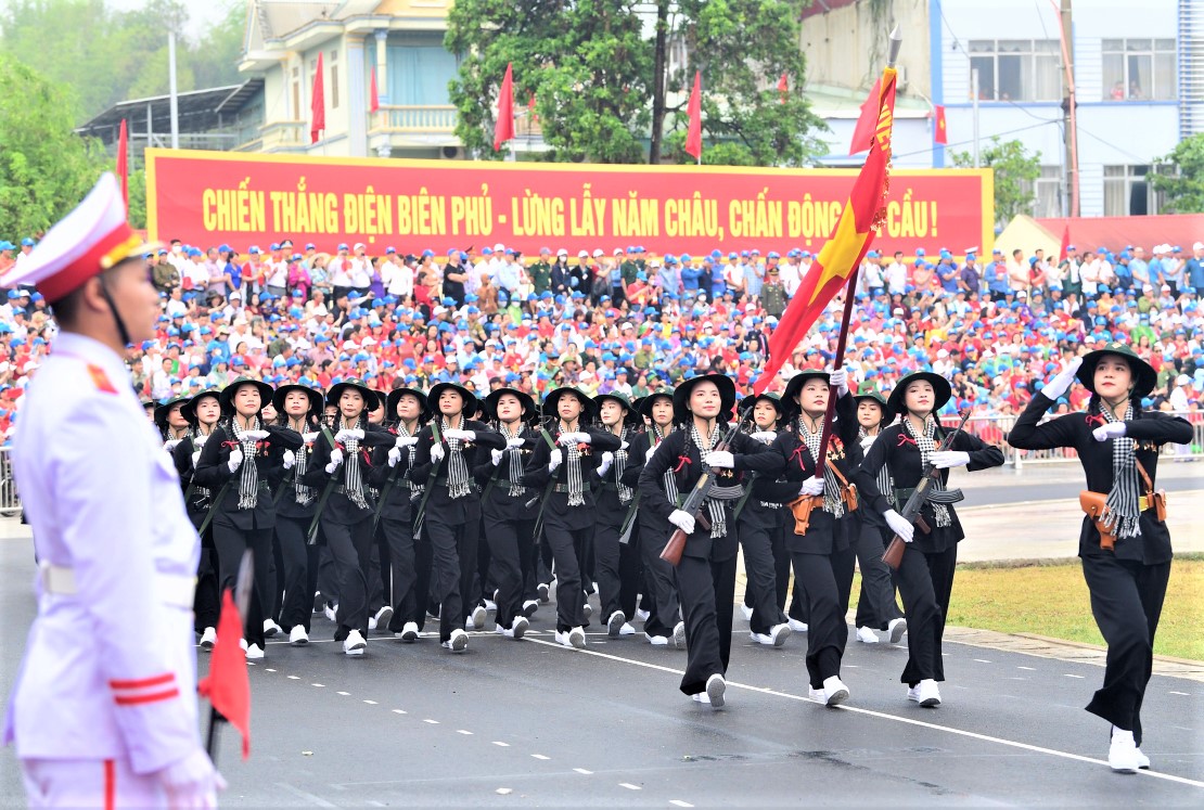 VNHS - Sáng 7/5, tại thành phố Điện Biên Phủ, Ban Chấp hành Trung ương Đảng, Quốc hội, Chủ tịch nước, Chính phủ, Ủy ban Trung ương Mặt trận Tổ quốc Việt Nam và tỉnh Điện Biên tổ chức trọng thể Lễ kỷ niệm 70 năm Chiến thắng Điện Biên Phủ (7/5/1954 - 7/5/2024). Ngay sau lễ mít tinh là chương trình diễu binh, diễu hành kỷ niệm 70 năm Chiến thắng Điện Biên Phủ với sự tham gia của hơn 12 ngàn người.