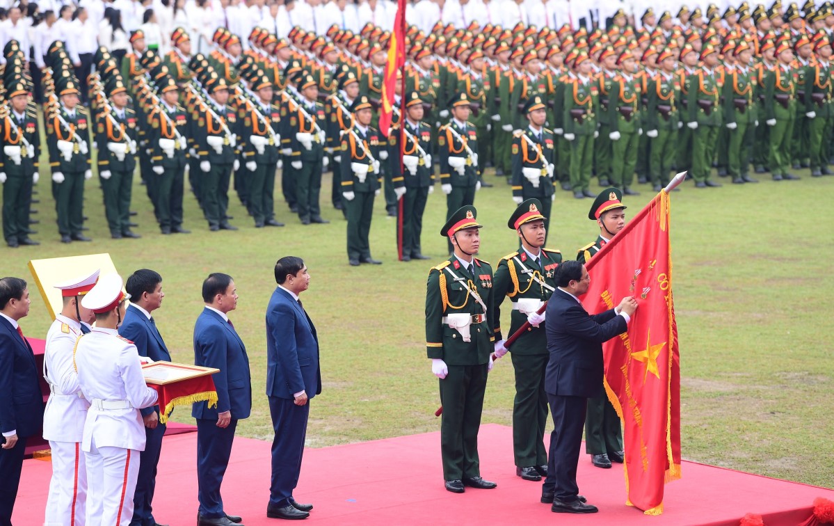Thay mặt lãnh đạo Đảng, Nhà nước, Thủ tướng Phạm Minh Chính đã trao và gắn Huân chương Độc lập Hạng nhất cho Đảng bộ, chính quyền và nhân dân các dân tộc tỉnh Điện Biên.