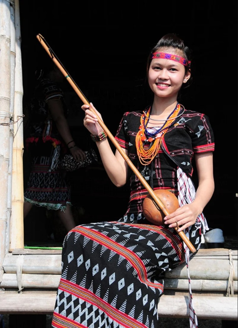 Họa tiết kẻ sọc ngang là đặc trưng của trang phục người Châu Ro