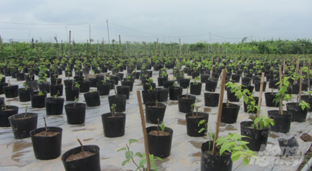 - Chọn chậu trồng và giá thể trồng: Nên chọn loại chậu nhựa giấy chuyên dùng màu đen để dễ xếp xe vận chuyển đi tiêu thụ xa. Kích thước chậu, 30 x 35cm, có lỗ thoát nước đáy. Giá thể trồng theo tỷ lệ khối lượng gồm, 70% đất ải + 15% trấu + 13% phân hữu cơ + 2% vôi bột.