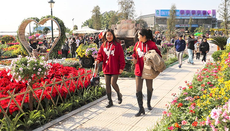 Lễ hội hoa thu hút nhiều bạn trẻ tới tham quan