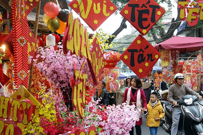 Tết truyền thống đã thật gần với hầu hết mọi người. Dù là những ngày làm việc cuối cùng trước kỳ nghỉ lễ, nhưng không khí náo nức rộn ràng vẫn tràn ngập các tuyến phố Thủ đô.