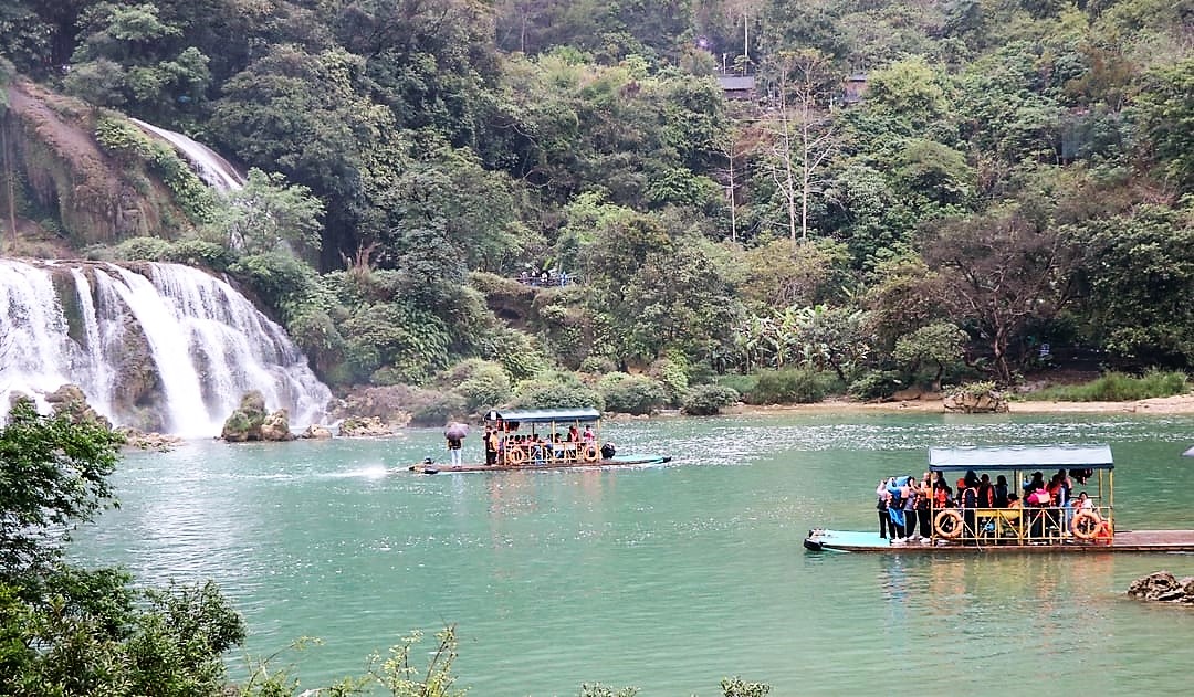 Dù không phải thời gian du lịch cao điểm từ tháng 9 đến tháng 12, nhưng thác Bản Giốc vẫn thu hút đông đảo khách du lịch trong và ngoài nước.