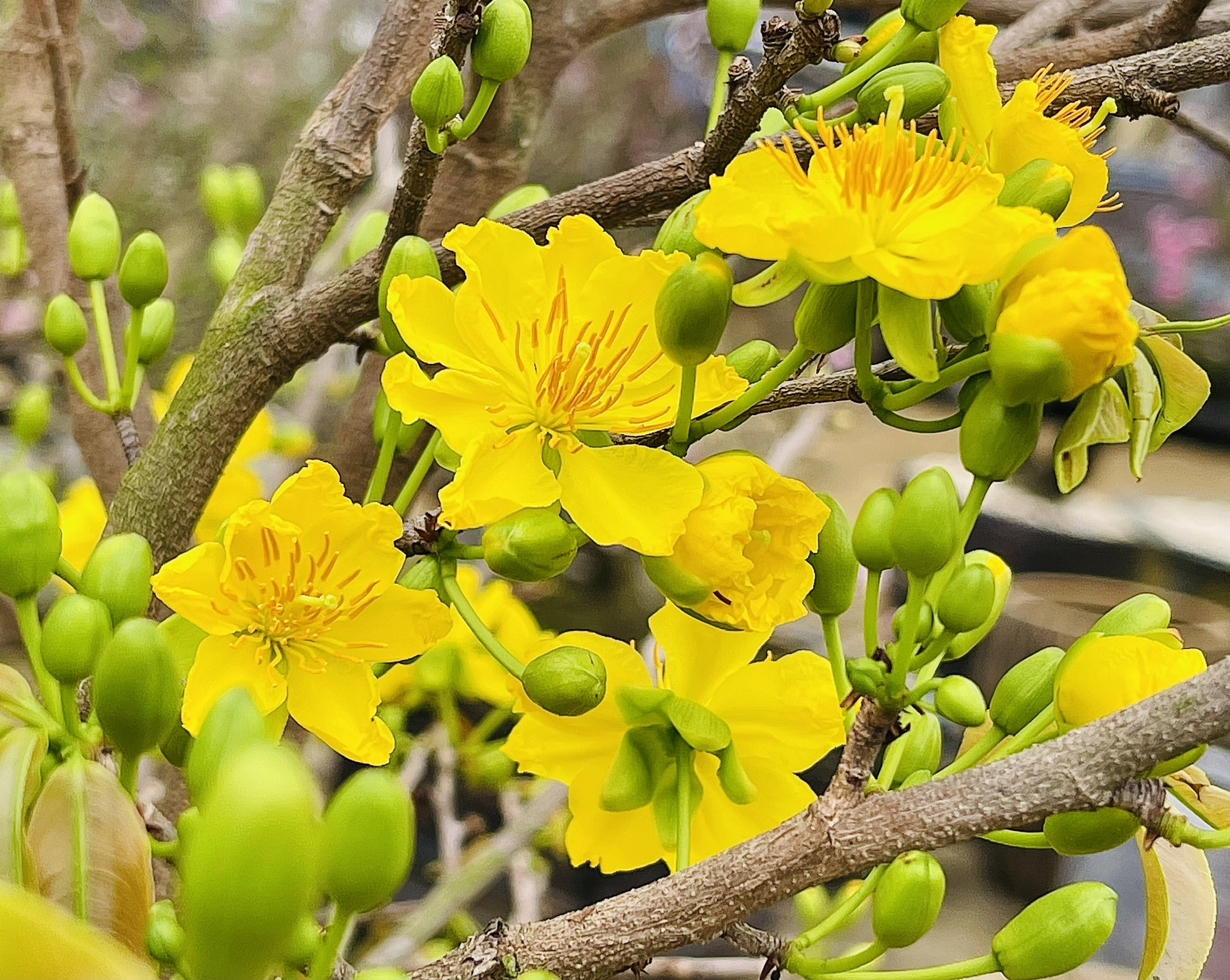 Miền Bắc có hoa đào thì miền Nam có hoa mai. Màu vàng của hoa mai từ lâu được xem là màu tượng trưng cho sự giàu sang, phú quý. Người ta chưng hoa mai vào dịp Tết với mong muốn một năm mới phát tài, giàu sang. Theo quan niệm của nhiều người, nhà nào có hoa mai nở càng nhiều cánh thì nhà đó càng may mắn và sung túc trong năm mới. Ngoài hoa đào hay hoa mai thì những loài hoa chơi Tết được lựa chọn nhiều đó là hoa lan, hoa đồng tiền, hoa ly, hoa cúc, nụ tầm xuân, hoa trạng nguyên,… Mỗi loài hoa có một ý nghĩa khác nhau nhưng tựu trung lại chơi hoa ngày Tết đều mang đến cho gia đình may mắn, bình an, hạnh phúc trong năm mới.