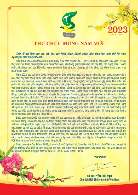 Thân ái gửi lãnh đạo các cấp Hội, các Nghệ nhân, Doanh nhân, Nhà khoa học, toàn thể Hội viên, Người yêu mến Sinh vật cảnh!