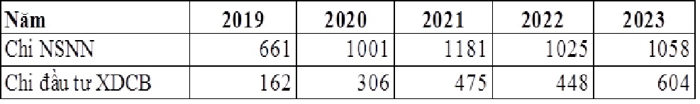 Nguồn vốn đầu tư XDCB giai đoạn 2019 - 2023 tại thị xã Chơn Thành, tỉnh Bình Phước (ĐVT: tỷ đồng)