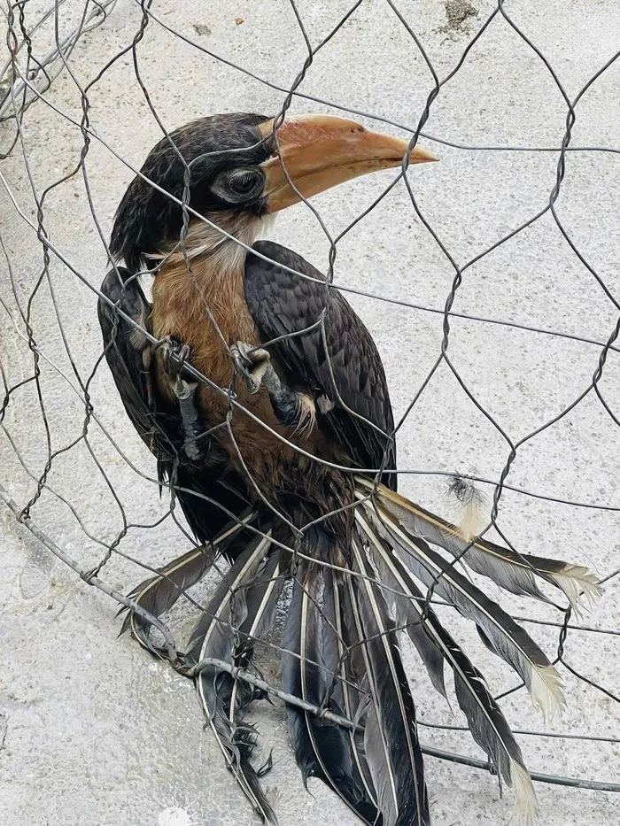 Trước đó, chị Nguyễn Thị Mỹ Trinh, sống tại phường Phú Đông, TP Tuy Hòa, tỉnh Phú Yên phát hiện một con chim bay lạc vào vườn nhà mình, vô tình mắc vào lưới ở chuồng gà. Chị Trinh đã nhanh chóng cứu giúp và báo cáo đến cơ quan kiểm lâm.