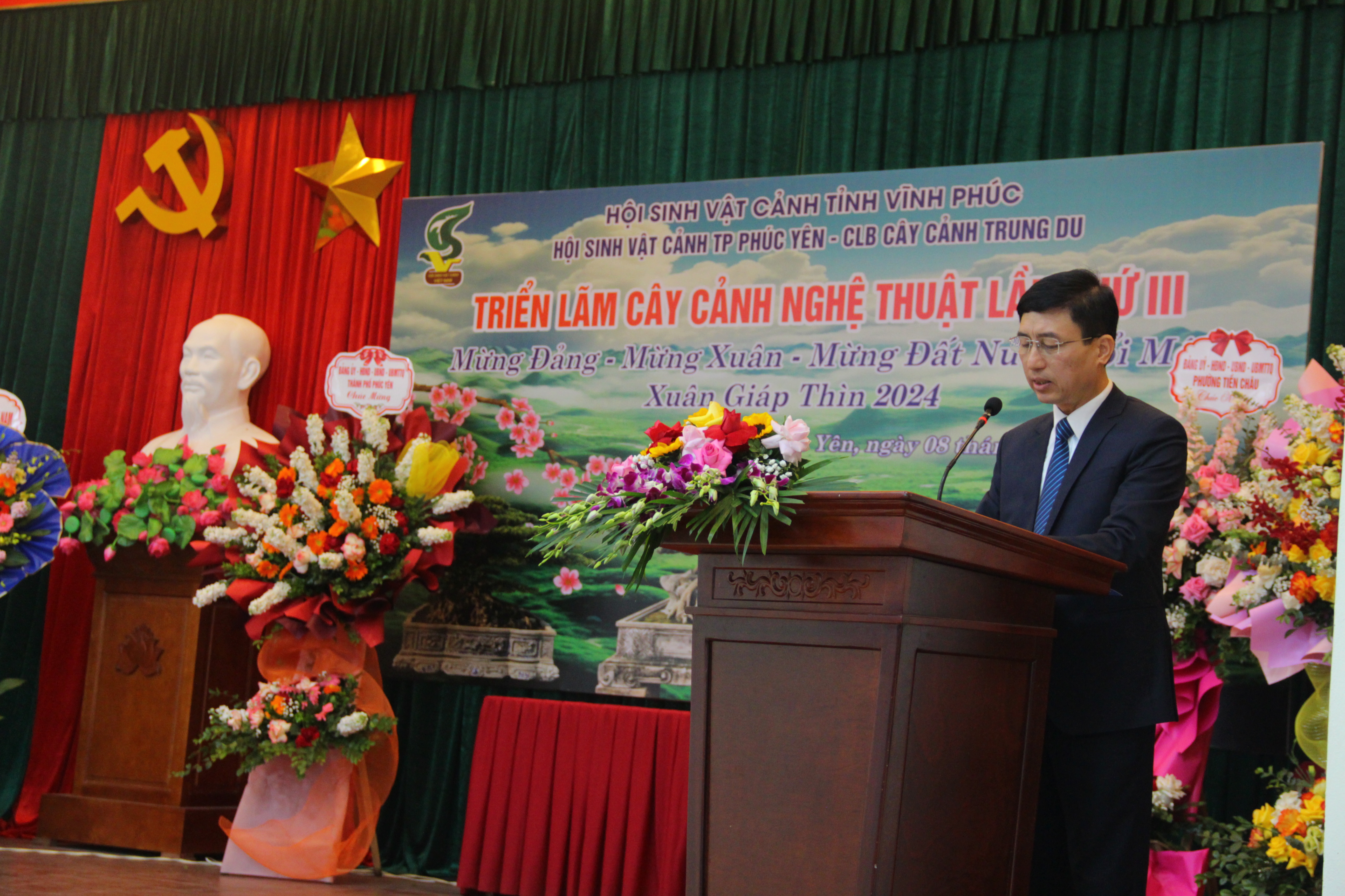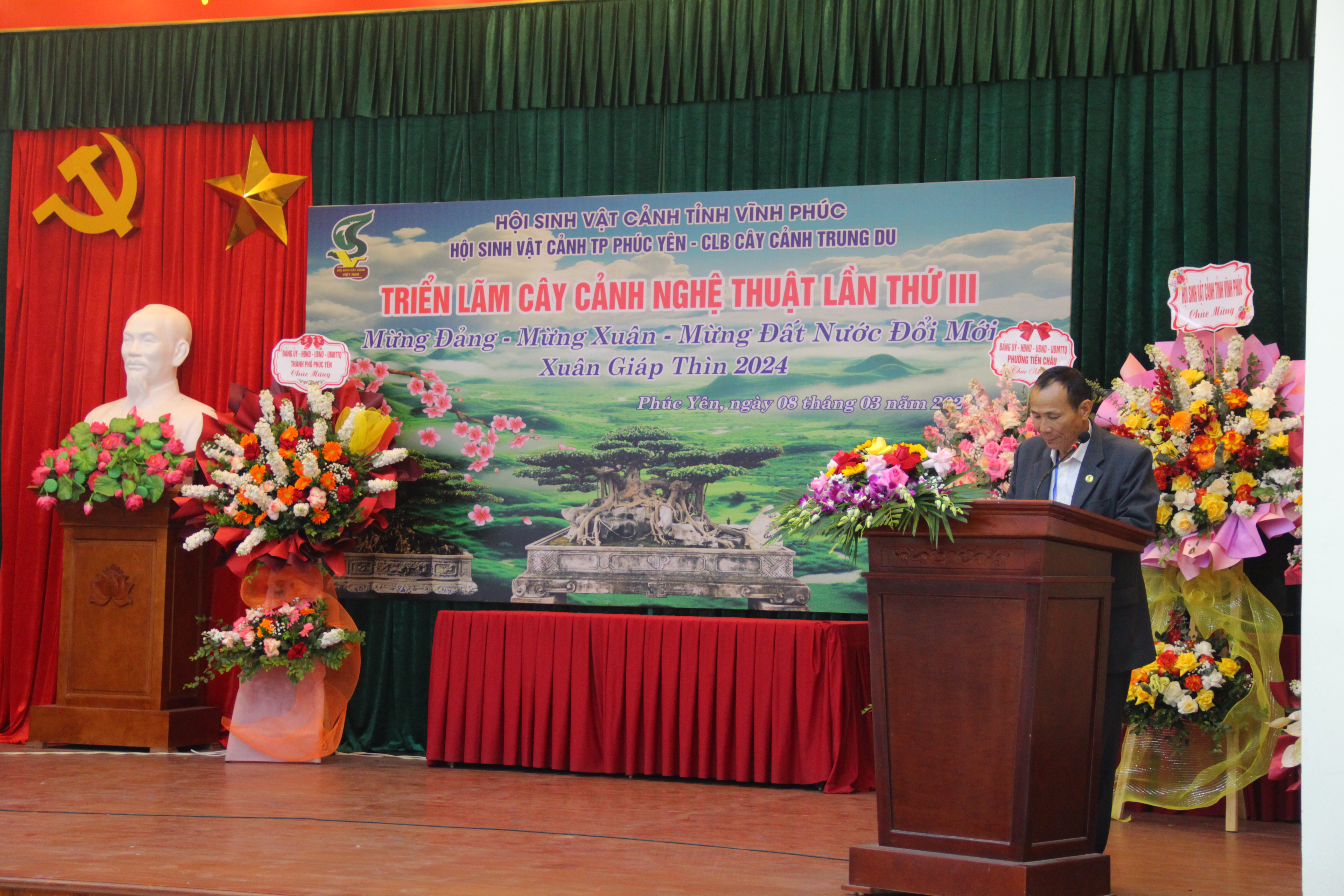 Phát biểu chào mừng sự kiện này, ông Nguyễn Tiến Thông, Phó Chủ tịch thường trực UBND Thành phố Phúc Yên bày tỏ sự vui mừng trước sự lớn mạnh và những đóng góp của CLB cây cảnh Trung Du vào sự phát triển kinh tế của địa phương.