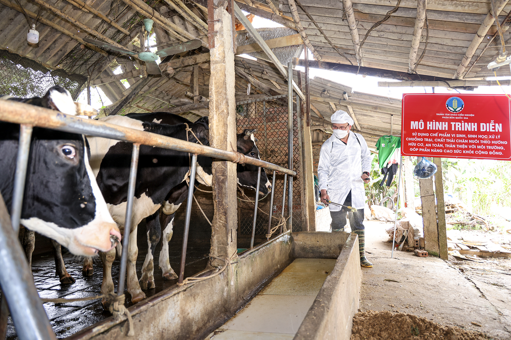 Tập huấn kiến thức sử dụng chế phẩm vi sinh, sinh học xử lý chuồng trại, chất thải chăn nuôi theo hướng hữu cơ, an toàn, thân thiện với môi trường cho hơn 100 hộ chăn nuôi bò sữa xã Vĩnh Thịnh