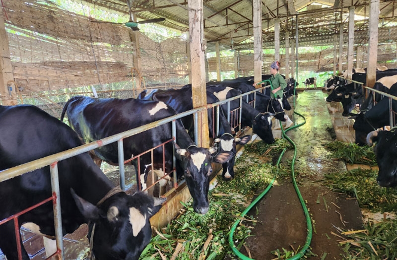 Đàn bò sữa của người dân tại xã Vĩnh Thịnh